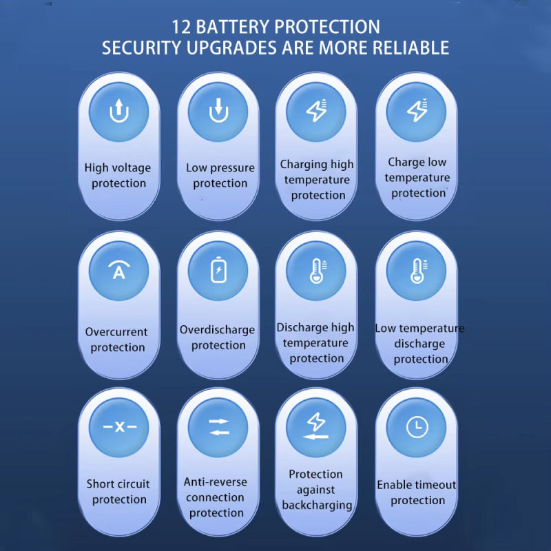 Das intelligente Sicherheitssystem umfasst 12 Schutzfunktionen, vom Verpolungsschutz bis zur Temperaturüberwachung, die jederzeit einen sicheren Betrieb gewährleisten.