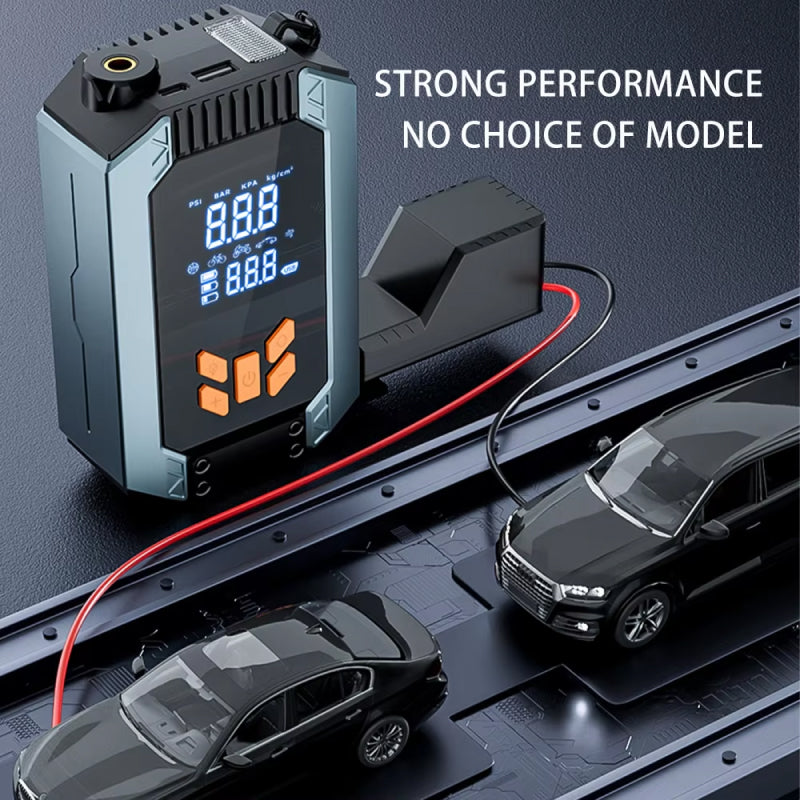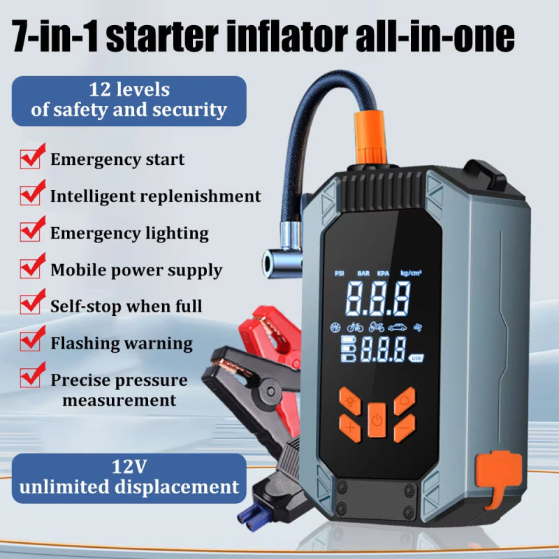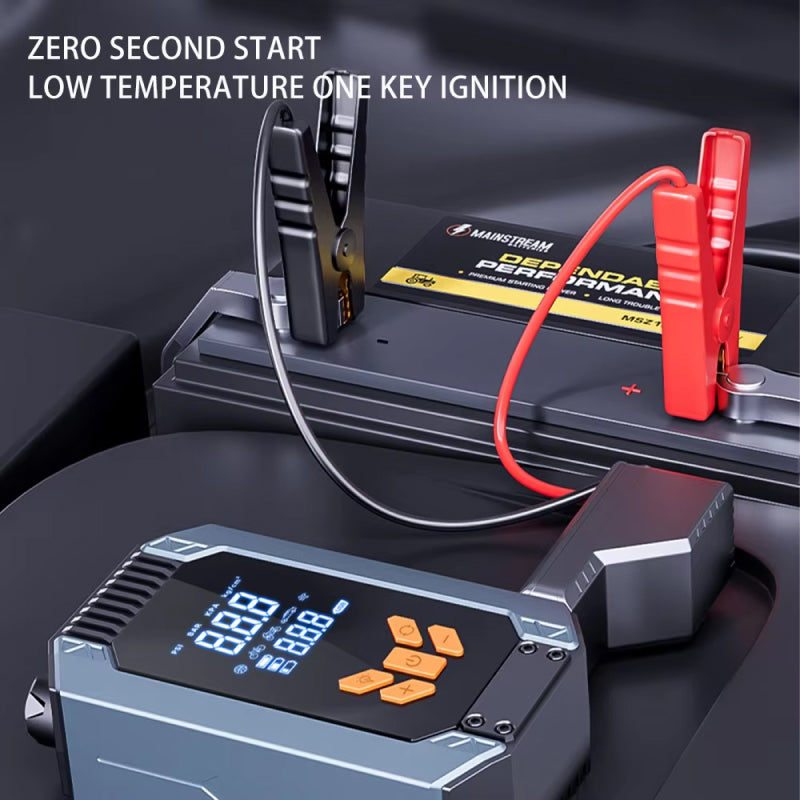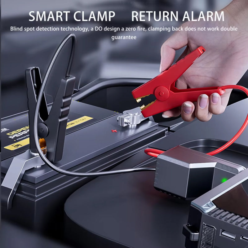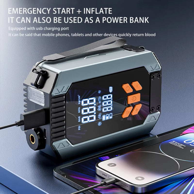 Das Multifunktionsdesign dient sowohl als Starthilfe als auch als Powerbank und ist in der Lage, verschiedene Geräte über USB-Anschlüsse aufzuladen und gleichzeitig Notfallhilfe für Fahrzeuge zu leisten.
